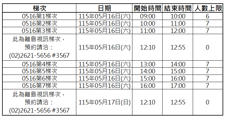 (5/16最後一梯次報到時間為14:40)