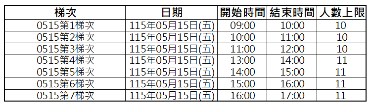 (5/15最後一梯次報到時間為15:40)
